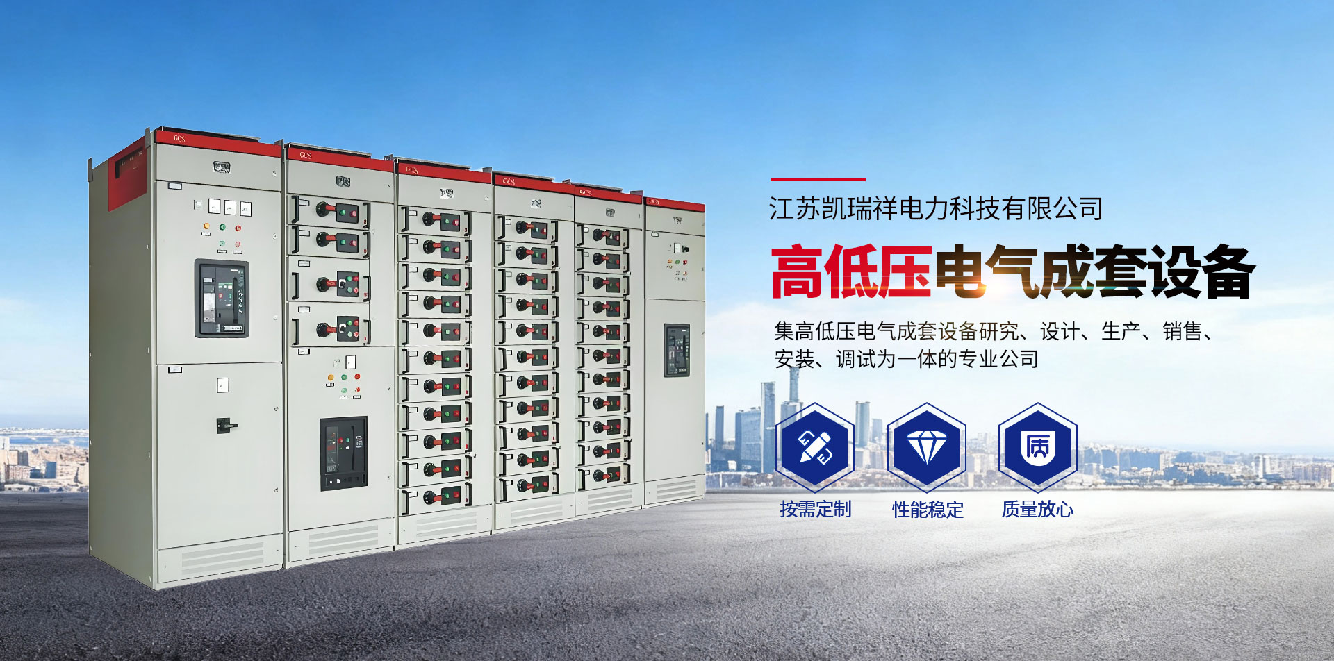 江蘇凱瑞祥電力科技有限公司座落在江蘇省阜寧縣:距風景區金沙湖沙灘浴場約5公里,是一家集高低壓電氣成套設備研究、設計、生產、銷售、安裝、調試為一體的專業公司。現有員工200余人,其中技術人員約占50%,固定資產近5000萬元,注冊資金5808萬元,占地面積約3.2萬㎡,建筑面積約1.86萬㎡。